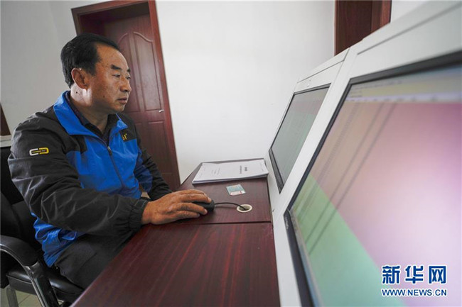 在哈密幸福村電采暖集中控制室里,工作人員在查看儀器工作情況(10月22日攝)。新華社記者 趙戈 攝