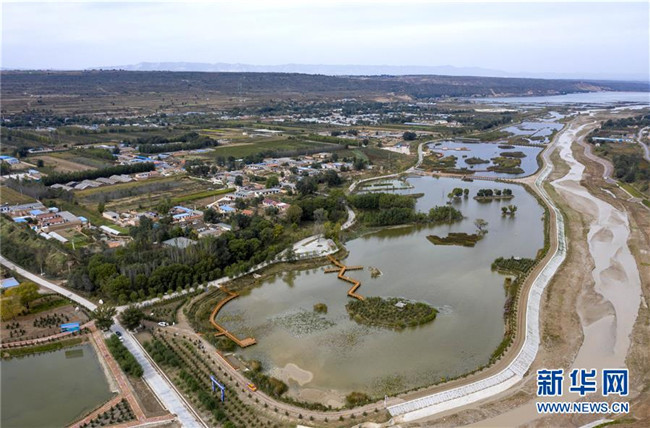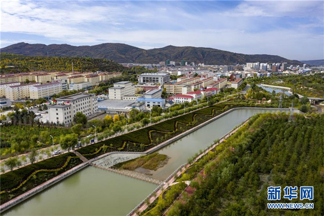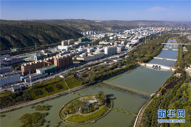 經(jīng)過(guò)綜合治理后的茹河成為寧夏固原市彭陽(yáng)縣的一道新風(fēng)景(10月12日無(wú)人機(jī)拍攝)。 新華社記者 馮開華 攝