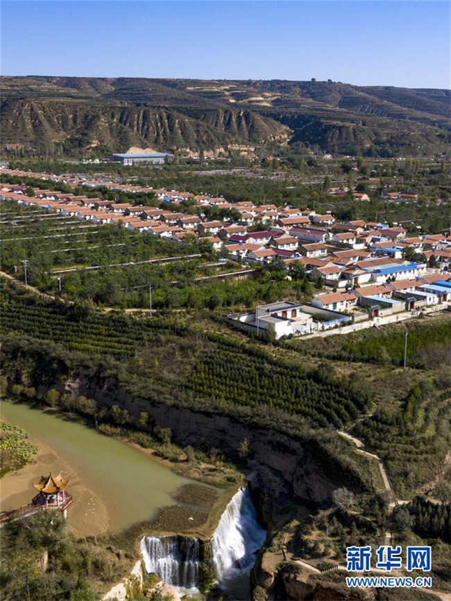 流經(jīng)寧夏固原市彭陽(yáng)縣城陽(yáng)鄉(xiāng)的茹河,因地殼變化和河床運(yùn)動(dòng)形成旱塬上的瀑布,當(dāng)?shù)匾源税l(fā)展鄉(xiāng)村旅游(10月12日無(wú)人機(jī)拍攝)。 新華社記者 馮開華 攝