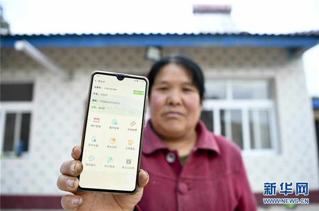 在寧夏固原市彭陽(yáng)縣白陽(yáng)鎮(zhèn)白岔村,村民展示可以“手機(jī)買水”的界面(10月11日攝)。 新華社記者 馮開華 攝
