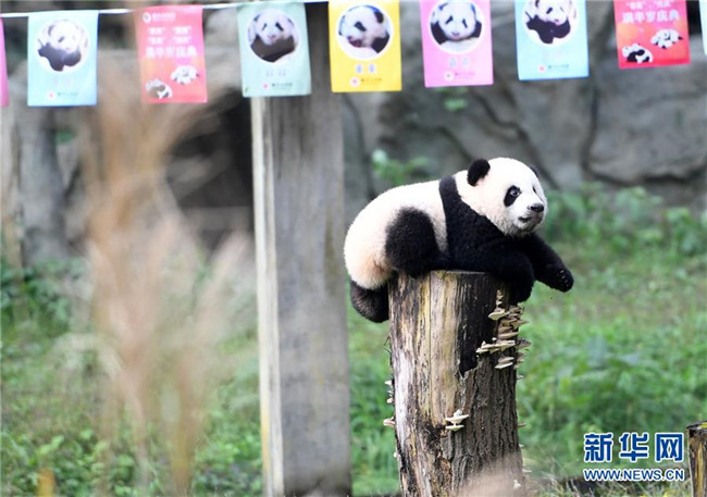 12月22日,重慶動物園1只半歲的大熊貓在戶外活動。當(dāng)日,重慶動物園為4只大熊貓寶寶“雙雙”“重重”“喜喜”“慶慶”舉行半歲生日慶?;顒印?只半歲大熊貓在飼養(yǎng)員的照料下,在熊貓館運動場內(nèi)玩耍、嬉戲,與市民游客一同過冬至。新華社記者唐奕攝