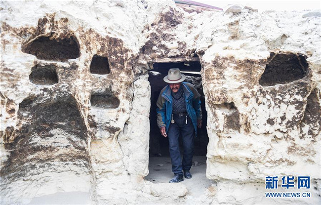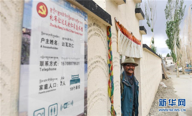 76歲的達(dá)瓦次仁在位于西藏阿里地區(qū)札達(dá)縣托林鎮(zhèn)札布讓村的家門(mén)口(7月30日攝)。 新華社記者 晉美多吉 攝