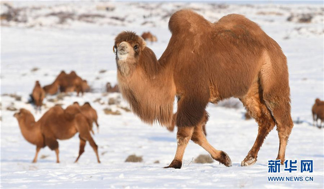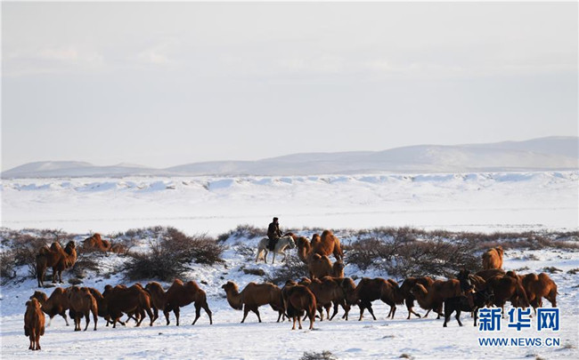 12月30日,牧民在新疆吉木乃縣“萬駝園”放駱駝。新華社記者 沙達提 攝