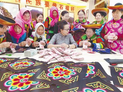 素隆姑公司在給繡娘分紅?;ブh扶貧開(kāi)發(fā)局供圖