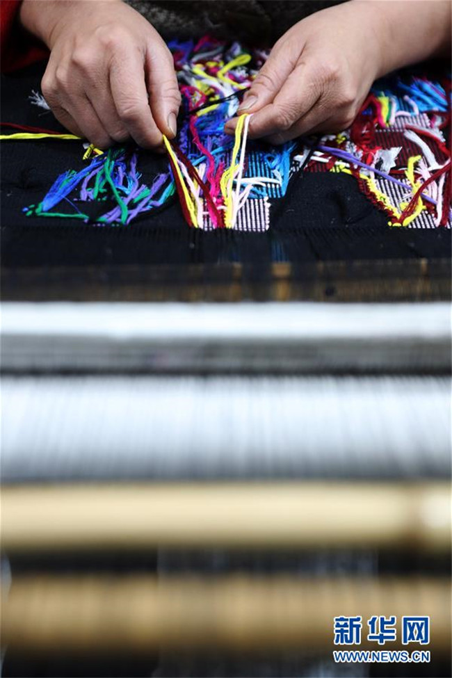 1月14日,在重慶市黔江區(qū)小南海鎮(zhèn)土家十三寨“西蘭卡普扶貧工坊”,員工在編織西蘭卡普。新華社發(fā)(楊敏 攝)