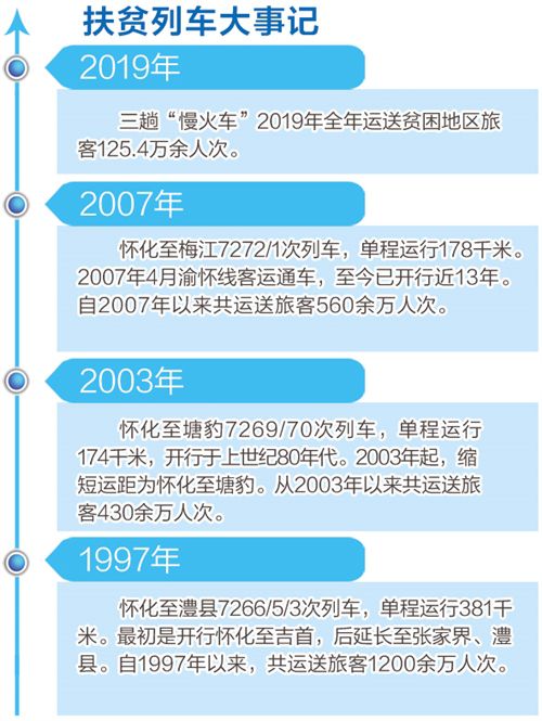 “慢火車”幾十年如一日運行在湘渝黔武陵山區(qū),這里沿線聚居著苗、侗、土家族等少數(shù)民族,經(jīng)濟(jì)欠發(fā)達(dá),貧困程度深,是國家脫貧攻堅的重點區(qū)域。為方便沿線百姓人、貨往來方便,列車允許乘客肩挑背扛大量山貨乘車,更有不少學(xué)子靠乘坐慢火車,走完求學(xué)之路。扶貧“慢火車”已成為山區(qū)困難群眾致富奔小康的希望之路。