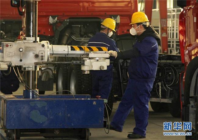 2月5日,中聯(lián)重科消防機(jī)械公司員工在廠房?jī)?nèi)進(jìn)行裝配。 新華社發(fā)