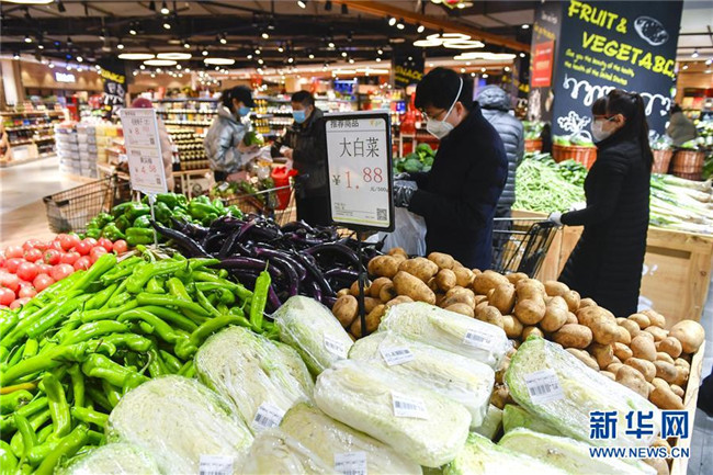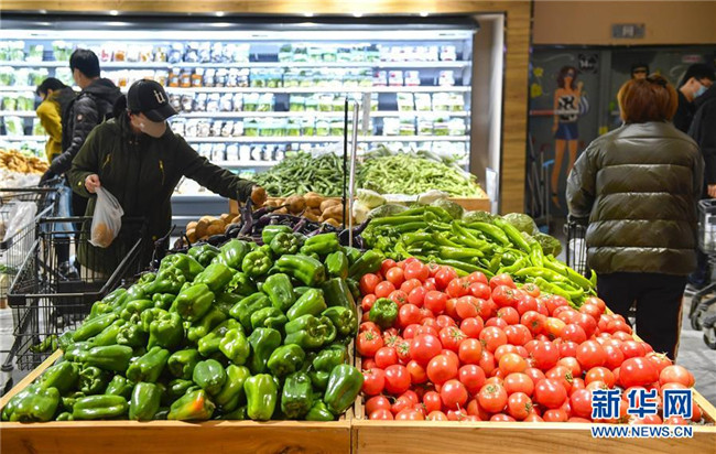 2月18日,在吉林省長春市一家大型連鎖超市內(nèi),市民選購蔬菜。 新華社記者 許暢 攝
