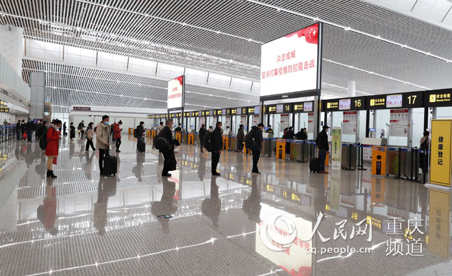 隨著旅客返程復(fù)工增多,重慶機場為最大限度減少人員聚集,通過自助值機、無紙化值機縮短旅客在候機樓停留時間同時,引導(dǎo)旅客在值機、安檢、登機排隊時,都保持1米以上的安全防護距離。