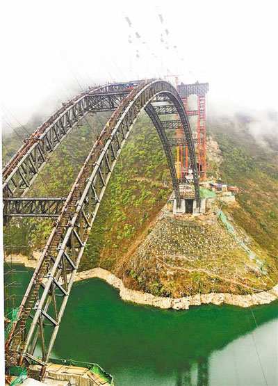 2月28日,鄭萬高鐵巫山段大寧河雙線大橋正式復工建設。在建設現(xiàn)場,工人們有的在裝卸建材,有的在大橋鋼管拱肋上作業(yè)。通訊員 盧先慶 攝