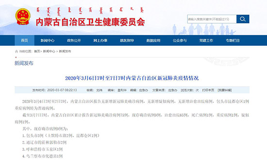 內蒙古自治區(qū)衛(wèi)生健康委員會官網(wǎng)截圖