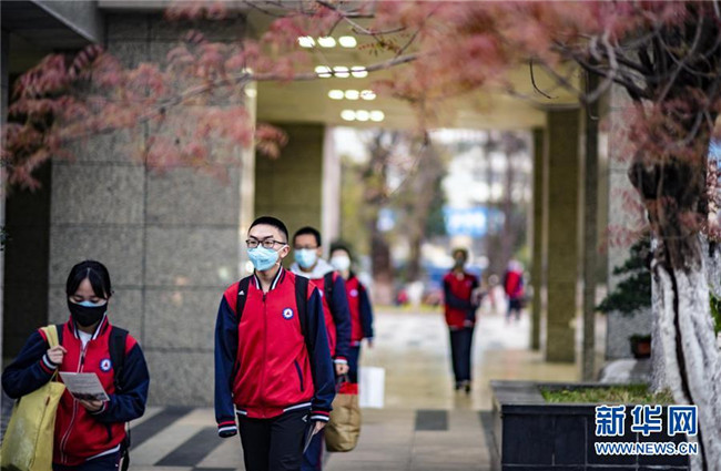 3月23日,昆明市第一中學(xué)高三年級學(xué)生進(jìn)入校園準(zhǔn)備上課。新華社記者 江文耀 攝