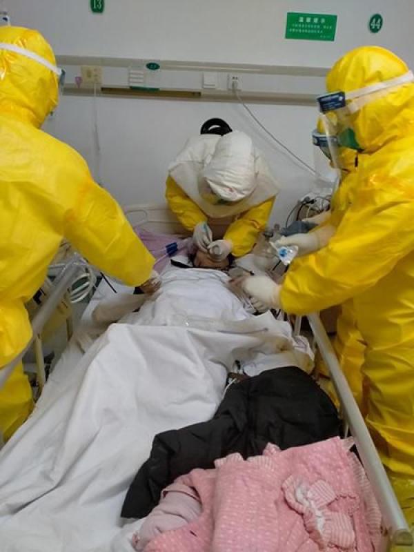 由于情況緊急,在來不及周全防護(hù)的情況下,他來到病床邊給病人插上管子,使危急情況得到緩解。