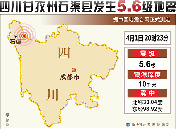 據中國地震臺網正式測定,1日20時23分在四川甘孜州石渠縣發(fā)生5.6級地震,震源深度10千米。