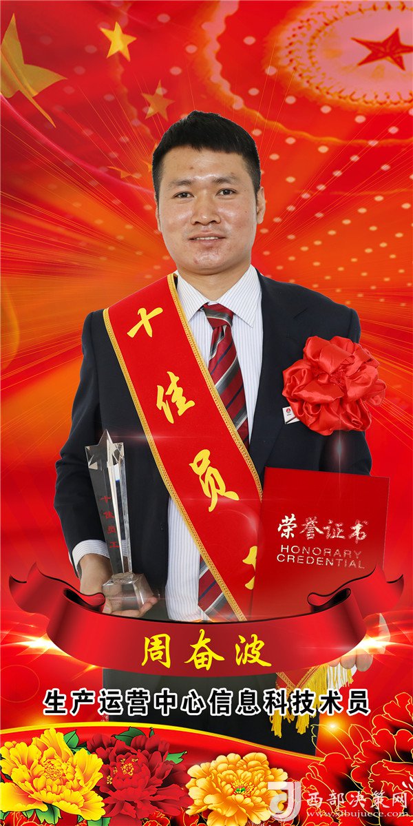 而當下,眼前站著的這位身強力壯的小伙,黝黑的膚色,手里緊緊的攥著他夢寐以求、至高無上的獎杯和證書,可以看得出,那份榮譽在他心里的分量。我想,對他而言那不僅僅是一份榮譽,更是一份責任,是一個企業(yè)對人才與年輕人的重視和培養(yǎng),更讓我看到的是企業(yè)里新增的這份擔當力量。正如周奮波講的那樣“這次‘十佳’對我來說有驚也有喜,驚的是,我要鼓足沖勁去干事業(yè),不能辜負組織對我的這份嘉獎;喜的是,這份榮譽不僅是對我工作的肯定,也為我今后干工作帶來更多的自信”。