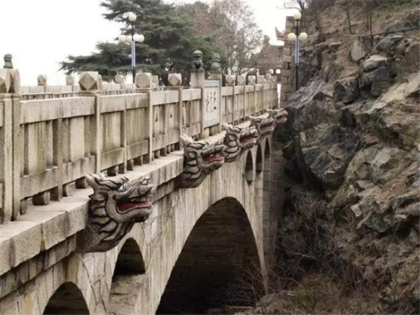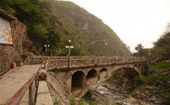 原潭側(cè)巖石上建有廟宇叫五龍宮,宮內(nèi)供有五位龍君,文化革命前殘?jiān)€在,“文革”后徹底毀廢。由于山洪原因,潭逐漸被碎石填塞,今已不復(fù)存在。唯潭上的五龍橋及橋頭上的大型五龍彩色壁畫依然向游人訴說著五龍?zhí)睹利惖膫髡f。橋欄鐫刻的“五龍橋”三字是當(dāng)時任中共中央書記處書記的胡喬木同志所書。