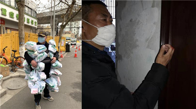 湖北武漢街頭邊,某社區(qū)網(wǎng)格員、被網(wǎng)友們親切稱為“藥袋哥”的豐楓把幾十個藥袋子串在一起掛在身上,照片被他人隨手拍下,感動無數(shù)網(wǎng)友。那天,他早上5點(diǎn)多就守在了藥房門口,12個小時后終于拿齊了近100份藥。四川攀枝花的巷弄里,57歲的李松江每天走訪200多戶,其中多是老年住戶。“要有耐心,敲門的力氣要大一點(diǎn),這樣老人才聽得見。”每天敲門上千次后,他的指關(guān)節(jié)紅腫破皮……