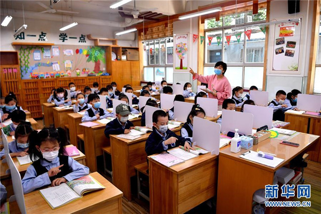 5月11日,陜西省西安市新城區(qū)后宰門(mén)小學(xué)一年級(jí)的學(xué)生在上課。新華社記者 劉瀟 攝