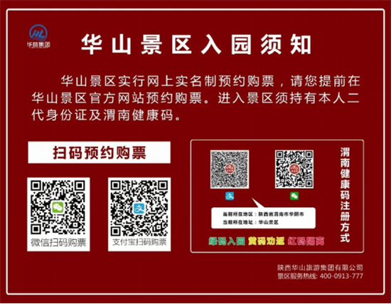 1、華山景區(qū)步行登山道(華山門)于今日(2020年5月15日)正式開放,每日最大限流1000人,運(yùn)營(yíng)時(shí)間為7:00至15:00。景區(qū)門票預(yù)約政策從原來(lái)的三天可預(yù)約改為七天可預(yù)約,開放當(dāng)日售票,根據(jù)庫(kù)存上限,售完即停。