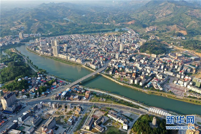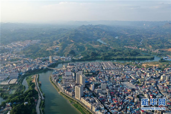 這是廣西環(huán)江毛南族自治縣縣城風(fēng)貌(5月14日攝,無(wú)人機(jī)照片)。