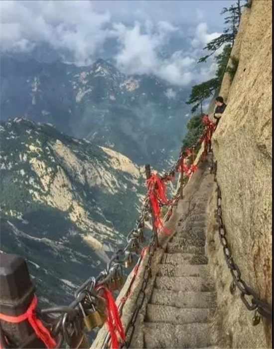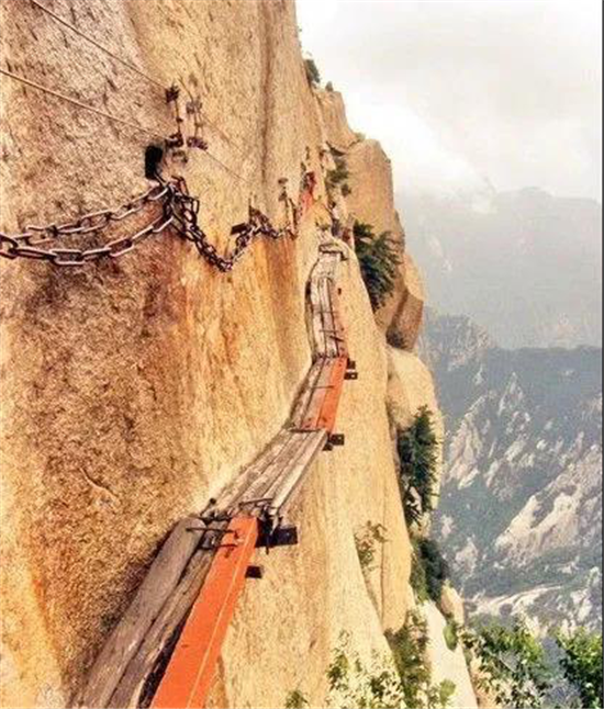世界十大險(xiǎn)道之一,有700余年的歷史,是華山派第一代宗師元代高道賀志真為遠(yuǎn)離塵世靜修成仙,在萬(wàn)仞絕壁上鑲嵌石釘搭木椽而筑。是華山的險(xiǎn)中之險(xiǎn)。古往今來(lái),歷險(xiǎn)探勝者絡(luò)繹不絕。