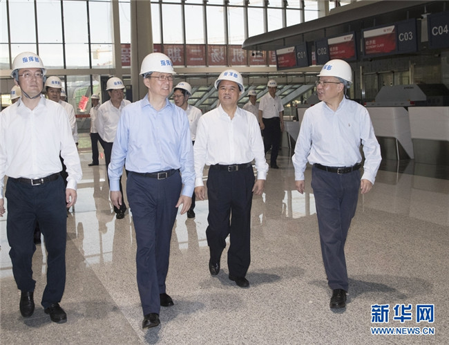 5月30日至31日,中共中央政治局常委、國務院副總理韓正在海南調(diào)研。這是5月30日,韓正在??诿捞m國際機場二期擴建項目施工現(xiàn)場,了解規(guī)劃建設(shè)和投產(chǎn)運營準備情況。 新華社記者 王曄 攝