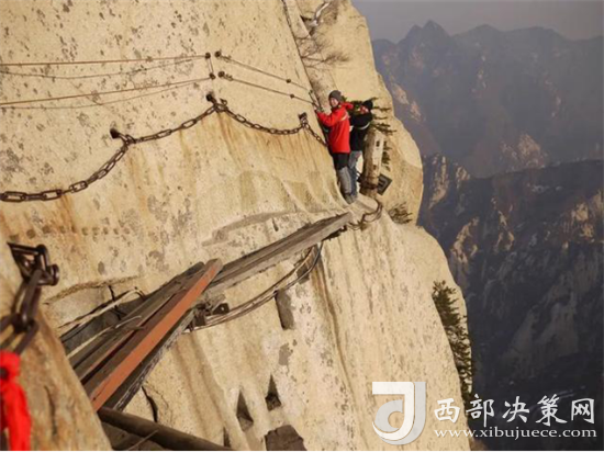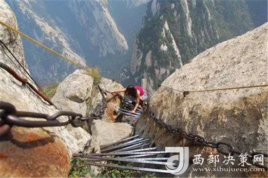眾所周知 “自古華山一條路”是一道奇觀。這條道路或越澗跨溪,或臨崖盤山,或入崖間深谷,或走峭壁嶺脊,或平坦或曲陡,或?qū)挸ɑ颡M窄,曲折變化,跌宕起伏,把人帶入意境深邃的萬(wàn)般景象之中。道路兩旁遍布的摩崖石刻,使人仿佛走進(jìn)一個(gè)書法藝術(shù)的走廊。一步一景一傳說(shuō),更使華山沿途披上了濃厚的文化色彩。