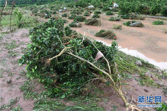 這是廣西永??h堡里鎮(zhèn)勝利村被洪水沖毀的果園(6月9日攝)。新華社記者 陸波岸 攝