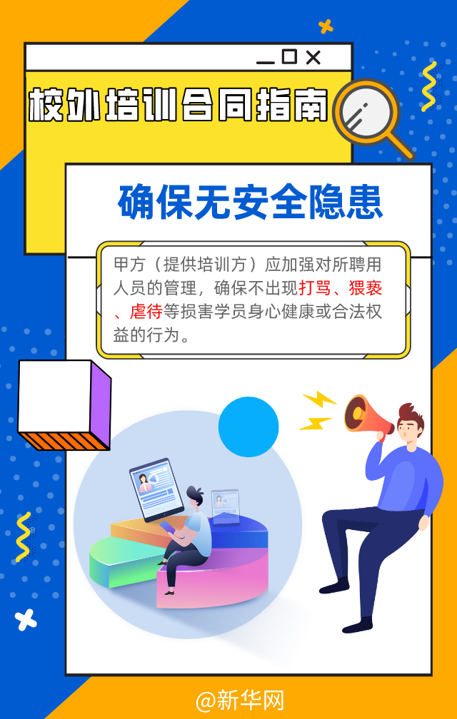 長(zhǎng)期以來(lái),校外培訓(xùn)機(jī)構(gòu)的資質(zhì)問(wèn)題,以及部分培訓(xùn)機(jī)構(gòu)存在違規(guī)收費(fèi)、退費(fèi)難、卷款“跑路”現(xiàn)象,這些令學(xué)生和家長(zhǎng)發(fā)愁。教育部、市場(chǎng)監(jiān)管總局近日發(fā)布《中小學(xué)生校外培訓(xùn)服務(wù)合同(示范文本)》,供培訓(xùn)者(學(xué)員)監(jiān)護(hù)人與開(kāi)展中小學(xué)生校外培訓(xùn)的培訓(xùn)機(jī)構(gòu)簽訂培訓(xùn)合同時(shí)參照使用,為規(guī)范校外培訓(xùn)做出新的探索。一起來(lái)看看,這份“國(guó)家版”標(biāo)準(zhǔn)合同有哪些亮點(diǎn)?