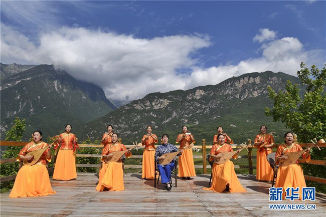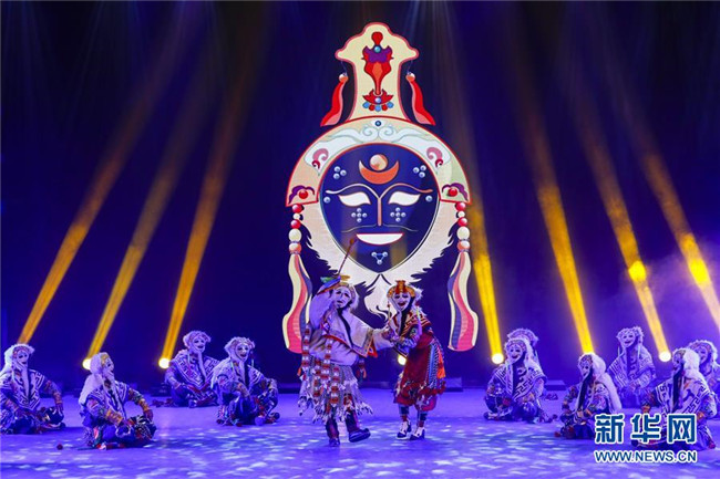 四川省阿壩藏族羌族自治州阿壩縣“蓮寶葉則”演藝公司演職人員在表演傳統(tǒng)曲種《折嘎》(6月14日攝)。折嘎是古老的曲種,如今被搬上舞臺(tái),并在演唱中加入了傳遞吉祥、贊頌新人新事新風(fēng)尚的內(nèi)容。這些演職人員中不少是從當(dāng)?shù)剜l(xiāng)村里來的年輕人,經(jīng)過培訓(xùn)合格后成為演員,通過表演獲得穩(wěn)定的收入。新華社記者 沈伯韓 攝