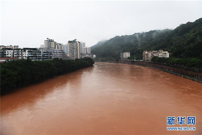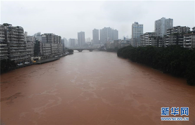 7月7日,洪水穿過綦江城區(qū)。新華社記者 王全超 攝