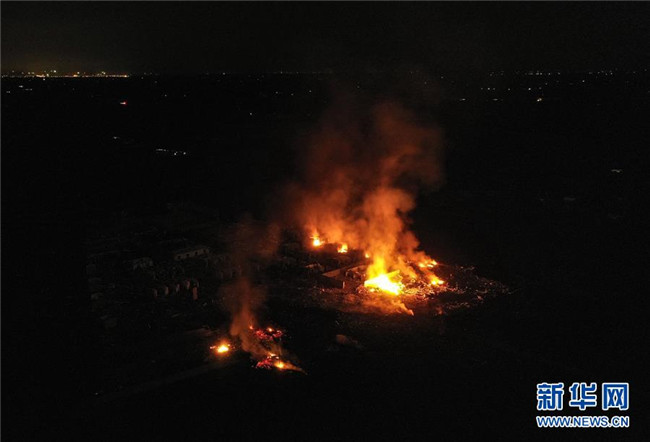 截至9日3時(shí),事故現(xiàn)場(chǎng)火勢(shì)已得到控制,但仍有明火。由于對(duì)爆炸品是否已燃完情況不明,救援人員通過(guò)無(wú)人機(jī)空中觀察,在警戒線(xiàn)外待命。