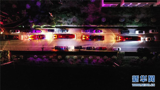 7月9日凌晨,在四川省廣漢市南豐鎮(zhèn)元盛村,消防車(chē)輛集結(jié)待命(無(wú)人機(jī)照片)。 7月8日晚,四川省廣漢市南豐鎮(zhèn)元盛村一花炮廠(chǎng)發(fā)生火災(zāi)并引發(fā)的爆炸事故,已導(dǎo)致6人受傷,其中2人重傷,4人輕傷。事故原因正在調(diào)查中。 新華社記者 王曦 攝