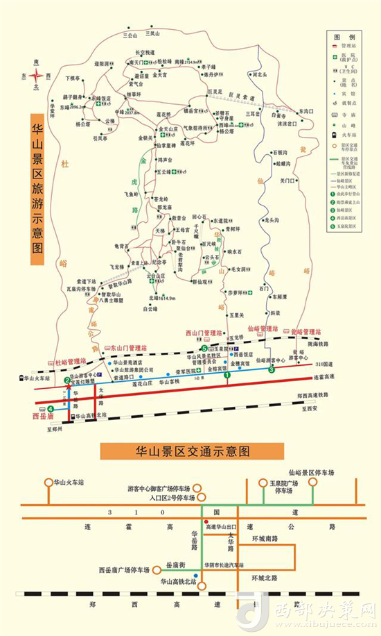 2、北峰以上,至東峰、南峰、西峰等主峰之間均為徒步,峰峰之間,路線可選。