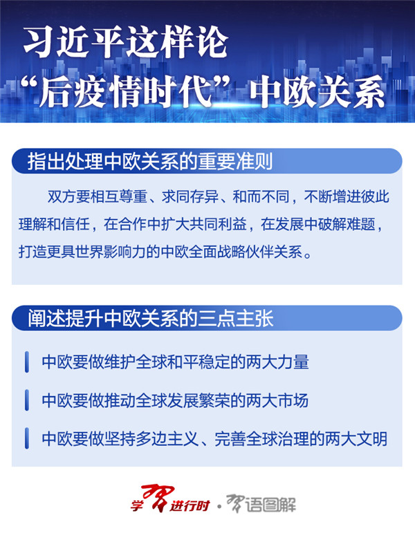 時(shí)隔6天,在以視頻方式會(huì)見(jiàn)歐洲理事會(huì)主席米歇爾和歐盟委員會(huì)主席馮德萊恩時(shí),習(xí)近平再次提出,“推動(dòng)‘后疫情時(shí)代’中歐關(guān)系更加穩(wěn)健成熟”。