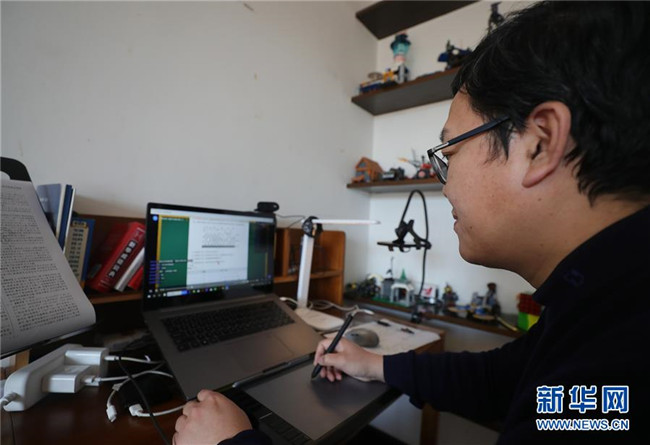 清華大學(xué)新聞與傳播學(xué)院教師梁君健在辦公室內(nèi)進(jìn)行在線教學(xué)(2月17日攝)。新華社記者 鞠煥宗 攝