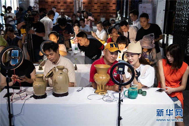 這是6月12日在湖南省長沙市望城銅官創(chuàng)新創(chuàng)客中心舉行的“直播帶貨挑戰(zhàn)賽”現(xiàn)場。新華社發(fā)(陳思汗 攝)