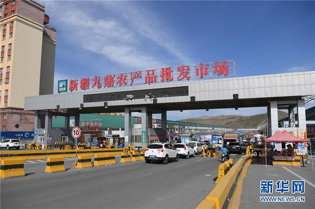 7月18日,在烏魯木齊市沙依巴克區(qū)新疆九鼎農(nóng)產(chǎn)品批發(fā)市場(chǎng),車(chē)輛人員登記進(jìn)入市場(chǎng)。 新華社記者 宋彥樺 攝