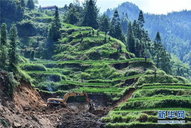 施工機械在烏英苗寨產業(yè)路工地作業(yè)(7月29日攝)。新華社記者 黃孝邦 攝