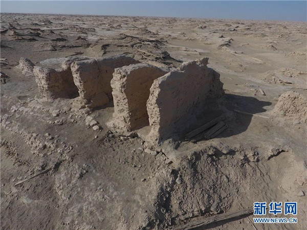 這是樓蘭古城三間房遺址(2019年11月14日攝,無人機照片)。新華社發(fā)(中鐵西北科學(xué)研究院有限公司提供)