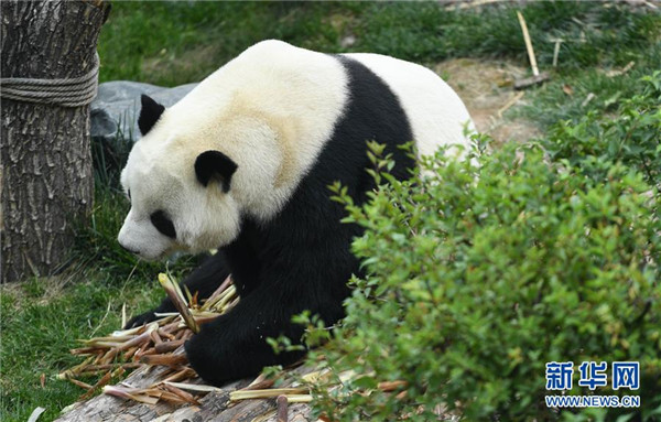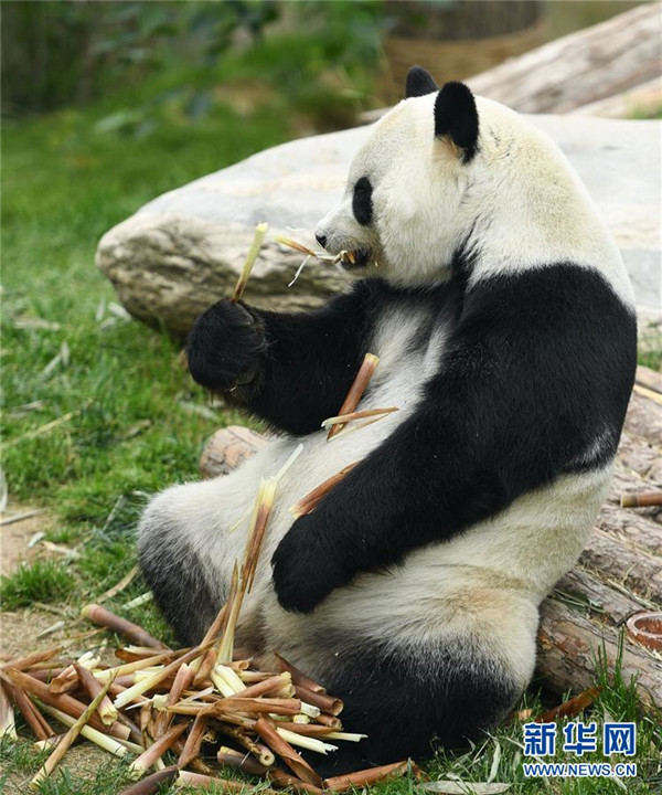 8月16日,大熊貓“和興”在西寧熊貓館內(nèi)吃竹子。青海省西寧熊貓館的四只大熊貓已經(jīng)在西寧生活了一年多,在工作人員的悉心照顧下,已經(jīng)適應了青藏高原的氣候,身體各項指標正常。新華社記者薛玉斌攝