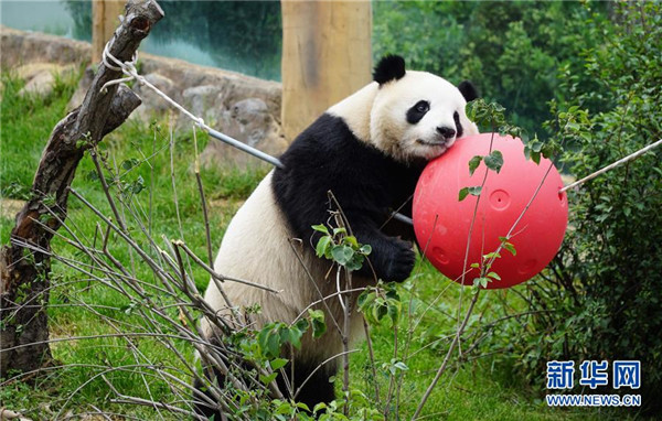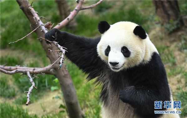 8月16日,大熊貓“園滿”在西寧熊貓館內(nèi)玩耍。青海省西寧熊貓館的四只大熊貓已經(jīng)在西寧生活了一年多,在工作人員的悉心照顧下,已經(jīng)適應了青藏高原的氣候,身體各項指標正常。新華社記者薛玉斌攝