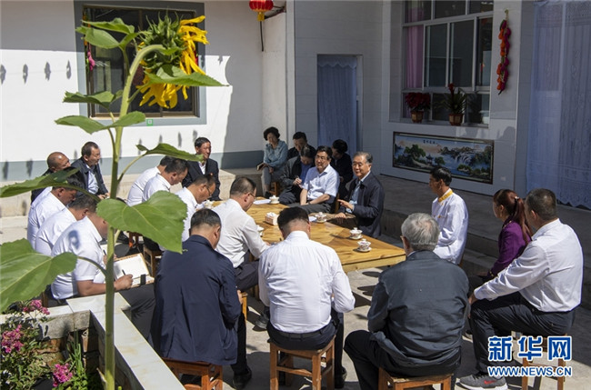 這是會前,汪洋在康樂縣與省市縣鄉(xiāng)村五級扶貧干部座談,聽取關(guān)于鞏固脫貧成果與鄉(xiāng)村振興有效銜接的建議。 新華社記者 李學(xué)仁 攝