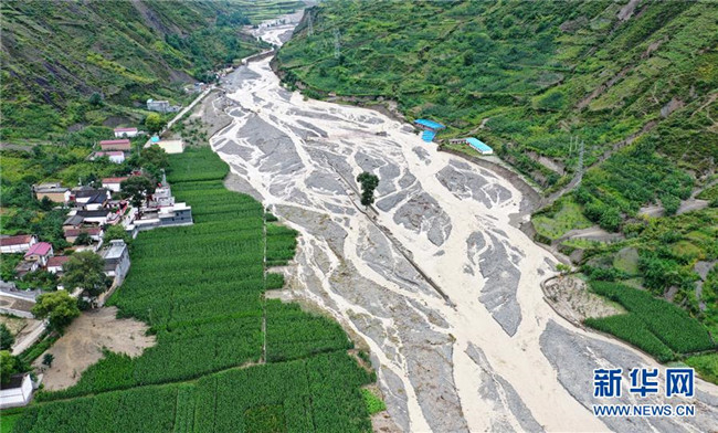 這是8月23日拍攝的舟曲縣被毀農(nóng)田和道路(無(wú)人機(jī)照片)。 新華社記者 郎兵兵 攝