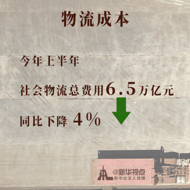 中國(guó)物流與采購(gòu)聯(lián)合會(huì)統(tǒng)計(jì)數(shù)據(jù)顯示,今年上半年,社會(huì)物流總費(fèi)用6.5萬億元,同比下降4%。