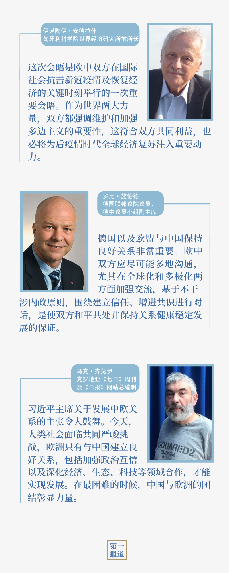 新冠疫情沖擊之下,世界變局加速演進,不穩(wěn)定不確定因素持續(xù)累積。中歐作為世界兩大力量、兩大市場、兩大文明,主張什么、反對什么、合作什么,具有世界意義。相互支持、團結合作,中歐在推動國際社會抗擊疫情、恢復經濟、維護正義等方面大有可為。