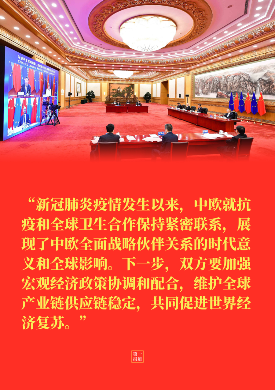 在14日晚這場“云會晤”中,習主席為下階段中歐關系指明方向,確定重點領域——