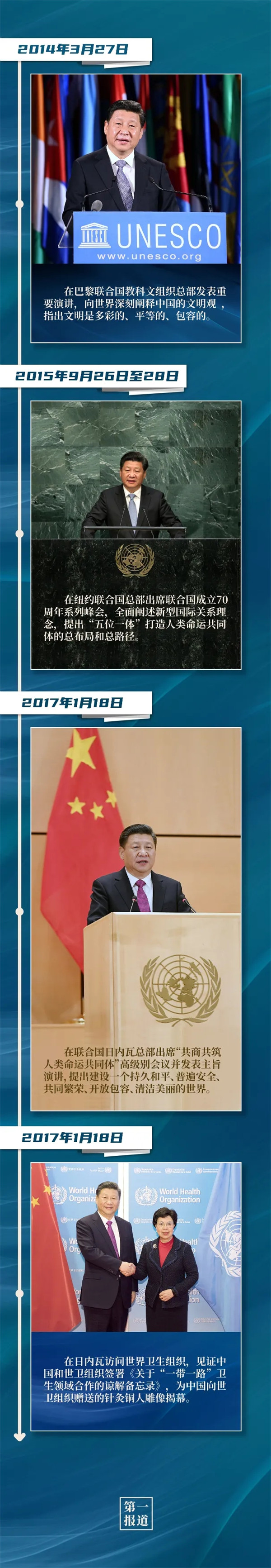 紐約聯(lián)合國總部、聯(lián)合國日內(nèi)瓦總部、聯(lián)合國教科文組織總部、世界衛(wèi)生組織,這些地方都留下了習主席的訪問足跡。站在聯(lián)合國講臺,習主席闡述關(guān)于促進世界和平發(fā)展的重要主張,表達對聯(lián)合國事業(yè)的堅定支持,傳遞攜手各方應對全球挑戰(zhàn)、深化多邊合作的真誠意愿。