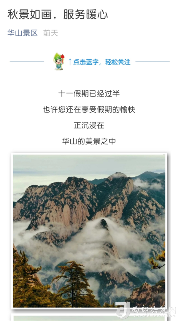 9月30日至10月8日期間,景區(qū)官方微信以歡度雙節(jié)、防疫安全、熱心服務(wù)、旅游攻略等為主題發(fā)布宣傳軟文23篇,累計(jì)閱讀量4.2萬人次,分享及轉(zhuǎn)發(fā)量共計(jì)1430次;官方微博向游客及時(shí)發(fā)布景區(qū)天氣、客流、景色實(shí)況、溫馨提示等景區(qū)度節(jié)綜合信息共計(jì)102條,閱讀量高達(dá)101.9萬次,并耐心、細(xì)致解答網(wǎng)友私信、評(píng)論共計(jì)532條;通過抖音平臺(tái)發(fā)布景區(qū)公告、秋日美景、好人好事等短視頻及圖片錦集共計(jì)18條,播放量共計(jì) 1.4萬次。