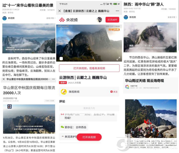 節(jié)前與央視頻手機(jī)客戶端及陜視新聞手機(jī)客戶端提前對(duì)接并測(cè)試信號(hào),確保黃金周期間全天24小時(shí)不間斷慢直播順利進(jìn)行,同時(shí)與央視、新華社、人民網(wǎng)、陜西日?qǐng)?bào)、陜西電視臺(tái)、渭南日?qǐng)?bào)、渭南電視臺(tái)及省內(nèi)主流網(wǎng)絡(luò)媒體聯(lián)系對(duì)接,確保黃金周期間各項(xiàng)工作有序推進(jìn)。
